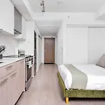 Situated nearly 15 minutes' walk from Dundas underground station, the 1-room Studio Condo Near City Centre Toronto offers Wi-Fi for business or leisure needs. The 42 m^2 apartment is approximately 25 minutes' walk from Corktown Common Park, within 10 minutes' drive of Scotiabank Arena, and also not too far from Masjidur Rahmah.